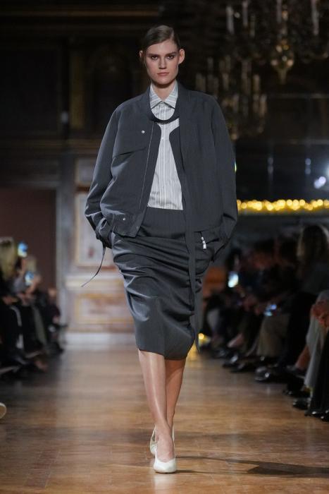 La colección reafirma el lenguaje sofisticado de la firma: trajes afilados, faldas estilizadas y transparencias sutiles que dibujan una mujer segura y contemporánea. Beckham apuesta por un lujo silencioso que prioriza la forma, la caída y la arquitectura de cada prenda.