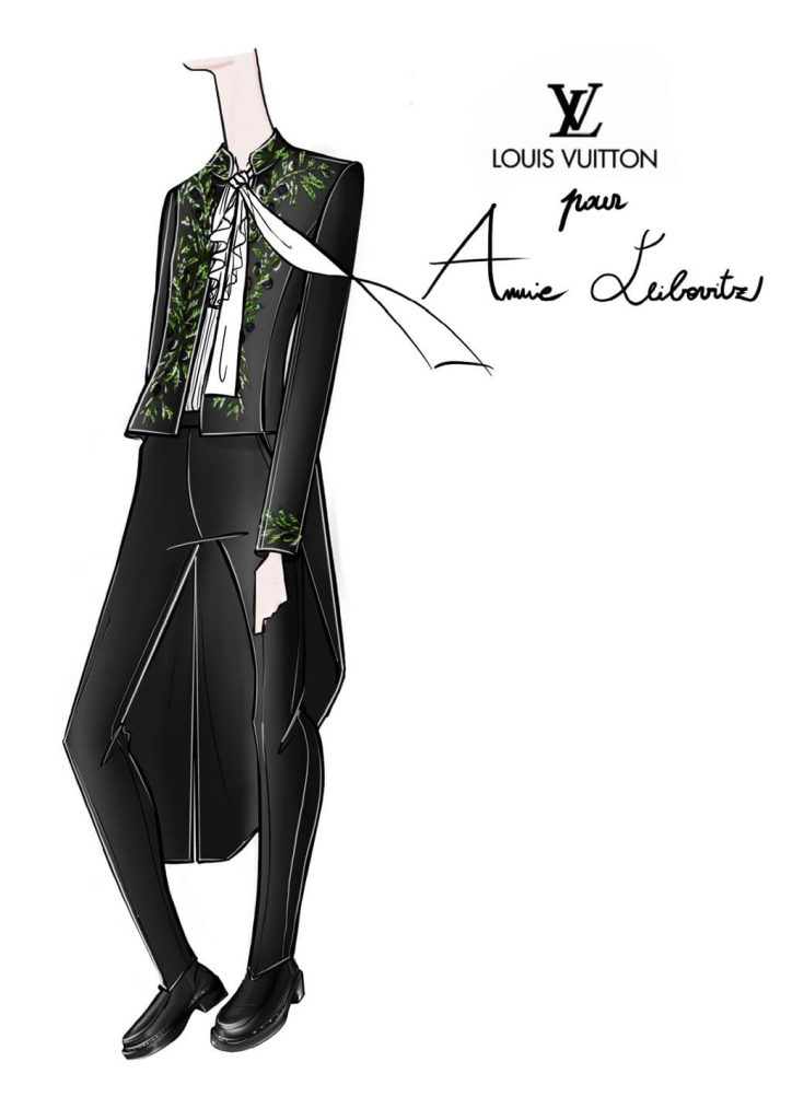 Ghesquière eligió una interpretación novedosa de las características distintivas de atuendo tradicional de la Académie, basándose en una de sus colecciones emblemáticas, la Mujer Levitas Primavera-Verano 2017, inspiradas en la forma y estética del siglo 18th en traje de hombre. La chaqueta de cuello alto y botonadura sencilla tiene cintura corta delante, alargándose hasta formar un frac en la espalda, con una abertura central.