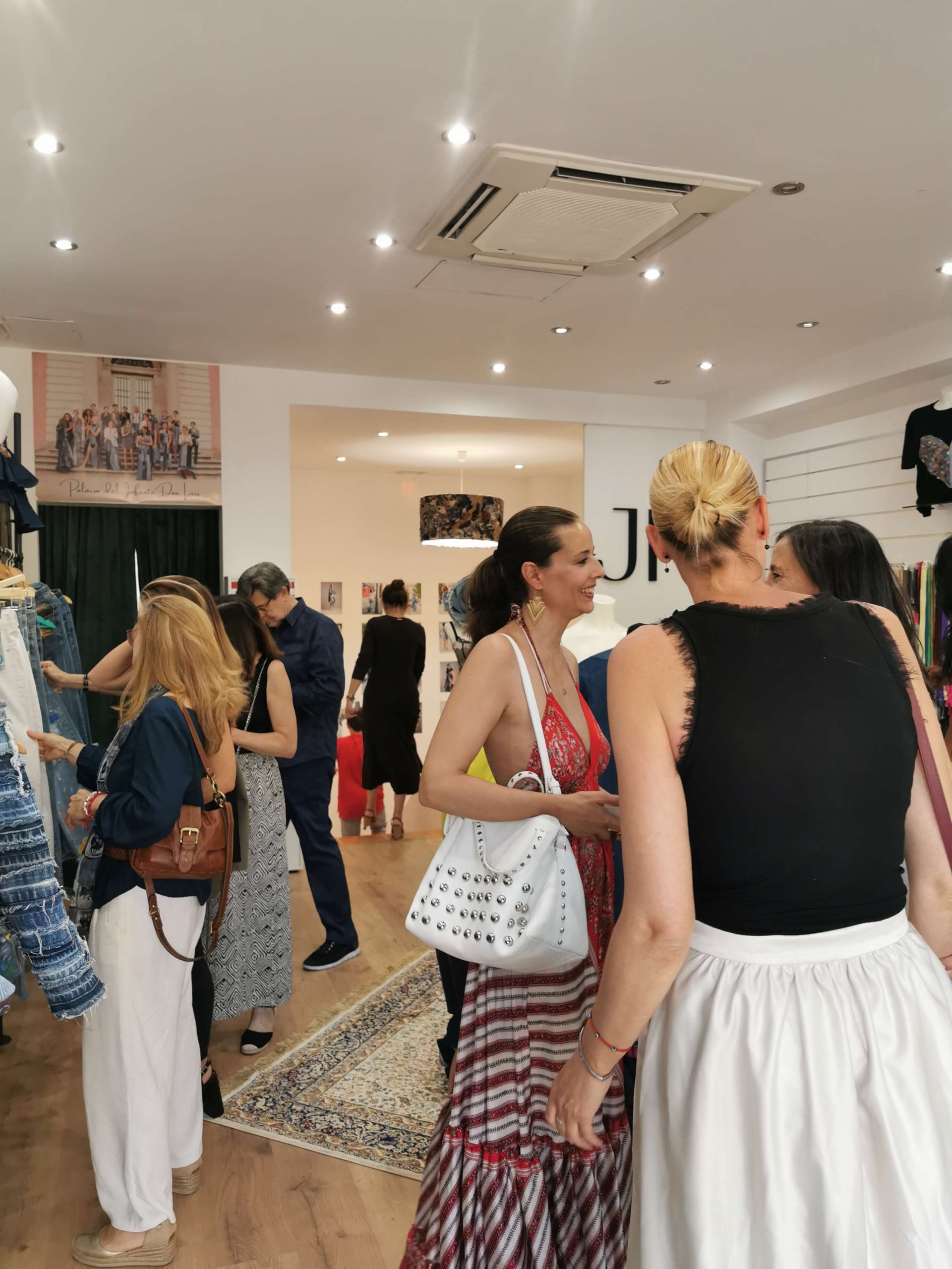 La inauguración del atelier reunió a celebridades y personalidades de la vida pública empresarios y amigos de la diseñadora. Los asistentes disfrutaron de una velada especial en la que la diseñadora presentó algunas de sus creaciones y ofreció un cóctel de agradecimiento. La velada incluyó vinos de Vinos Argentinos y Abadía de San Quirce, un cortador de jamón que deleitó a todos con su habilidad cortar un Cinco Jotas de la firma de los pedroches Ibedul, una gran selección de quesos y la única bebida energética vegana a base de taurina vegetal, WildCat Energy Drink.