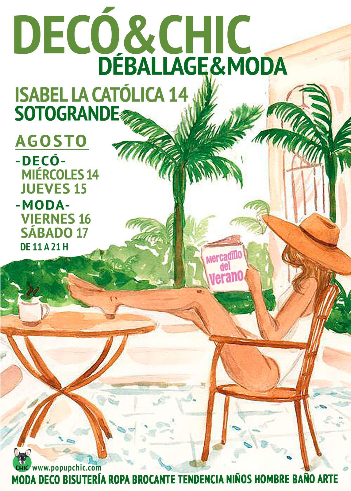 SOTOGRANDE: En este lugar se llevará dos mercadillos. Primero será el turno de DECÓ & CHIC, uno de los eventos de referencia del mundo de la decoración y las antigüedades. Será el 14 y 15 de agosto en la calle Isabel la Católica, 14 y albergará todas las novedades selectas de marcas y galerías de este sector.