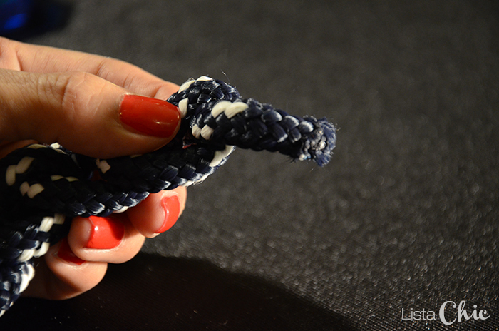 Necesitaremos para este DIY: una cuerda o cordón, este lo recuperé de un llavero que me regalaron y que decía algo así «Welcome on board».