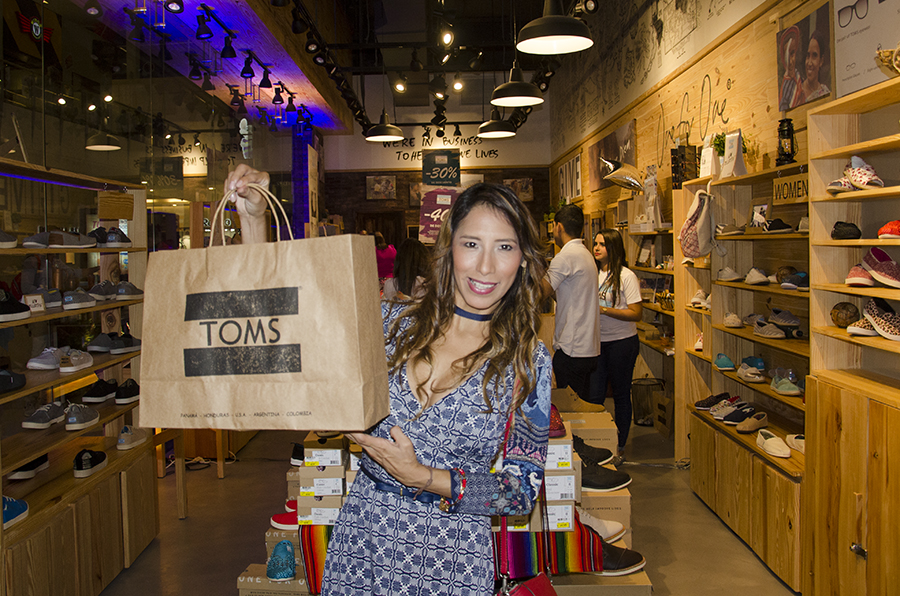 Muy feliz en apoyar a difundir el mensaje de «One for one» que la marca tiene como modelo de responsabilidad social. Con la compra de un zapato o accesorio les permite contribuir en diversas causas como proveer un par de zapatos a un niño necesitado o mejorar las condiciones de vida como agua limpia, prevención de Bullying, entre otras.
